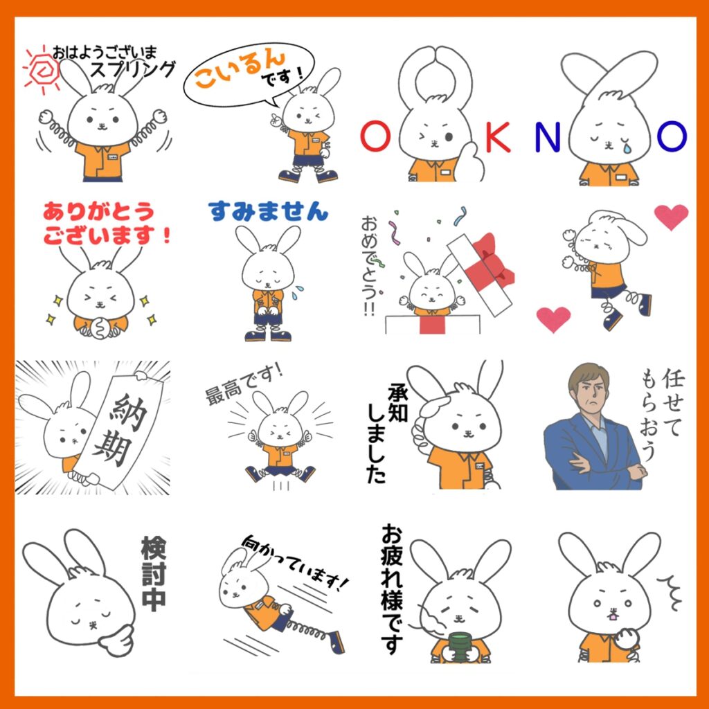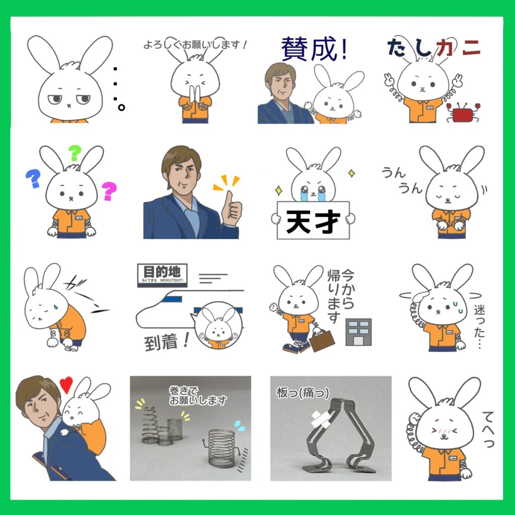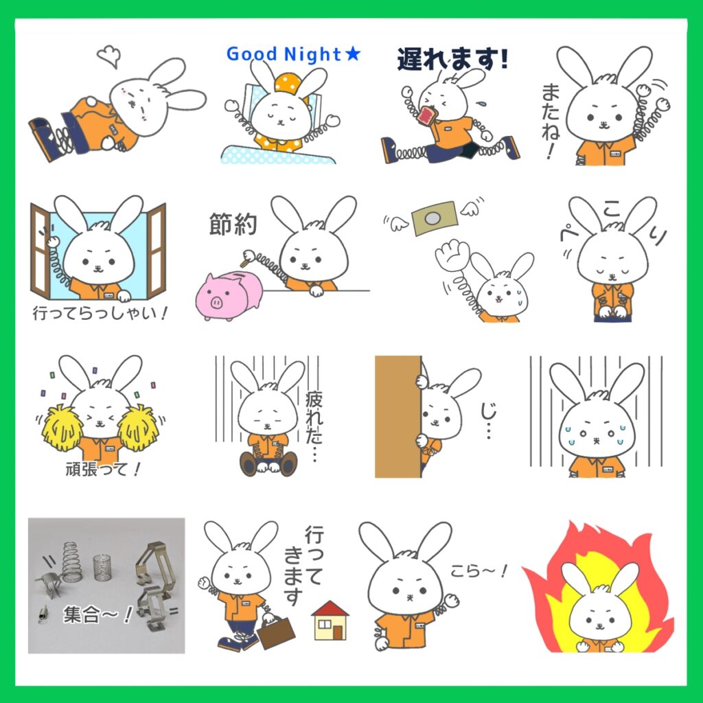 板ばね・線ばね・クイックファスナーの形状にかけた「痛っ(板)」「巻きでお願いします」などのスタンプも追加するなど、かなりバラエティ豊かなものとなっています。